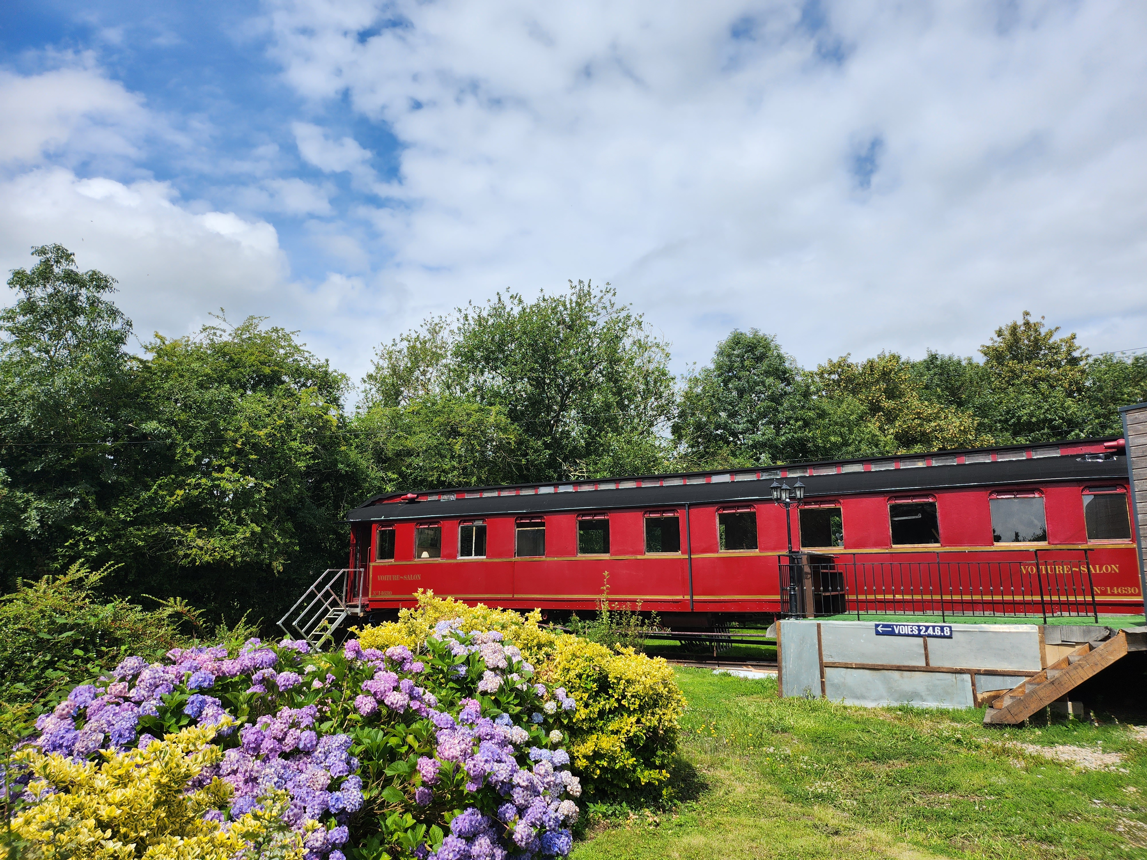 Évadez-vous dans le charme d’antan avec notre tout nouveau joyau historique ! La voiture voyageurs Prusse de 1910 situé dans un magnifique jardin en Normandie. Entrez dans un monde où l’élégance règne, dans une époque ou les voyages étaient synonymes de glamour et d’élégance. Vous pourrez profiter du calme de la nature environnante.